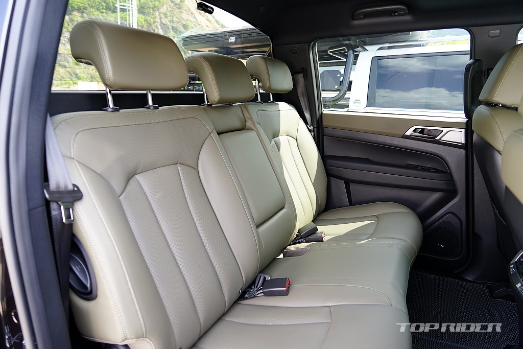 픽업트럭이라고 하면 실내가 투박할 것 같지만, 렉스턴 스포츠 SE는 꽤 고급스러운 인테리어를 갖추고 있습니다: