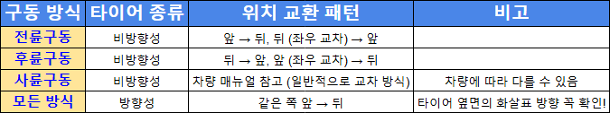 타이어 종류와 구동 방식에 따른 위치 교환 방법 (패턴 정리)